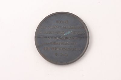 Medaglia coniata per celebrare la fondazione della diga del porto di Mamalucco. L'opera si era resa necessaria a causa delle sabbie trasportate dall'estuario veneto che rischiavano di bloccare il porto e che ai primi dell'Ottocento ne avevano reso più difficoltoso l'accesso. La progettazione della diga fu iniziata nel 1835 e nel 1838 ne fu posta la prima pietra, i lavori si conclusero due anni dopo nel 1840. (cfr. Salvatico-Lazari,