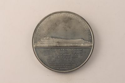 Medaglia realizzata per commemorare la Exhibition of Industry of All Nations tenutasi a Londra dal 01 maggio al 15 ottobre 1851, prima Esposizione Universale, organizzata dal principe consorte Alberto di Sassonia-Coburgo-Gotha (1819-1861), effigiato al recto della medaglia. L'evento si colloca nel contesto della Rivoluzione industriale europea e nell'affermarsi delle Esposizioni universali come una vetrina internazionale della potenza industriale e coloniale di un paese. La medaglia raffigura una rappresentazione del Crystal Palace di Londra, edificio in acciaio e vetro inaugurato nel 1851 come padiglione espositivo dell'Esposizione in Hyde Park, a Londra. Fu in seguito ricollocato a Sydenham Hill nel giugno 1854 e sopravvisse fino al 1936, quando fu distrutto da un incendio. Il palazzo era di dimensioni imponenti e rappresentava la massima espressione dell'architettura inglese dell'epoca della Rivoluzione industriale. La medaglia celebra l'edificio come il trionfo della modernità, insistendo nell'iscrizione al verso in particolare sulle sue imponenti dimensioni e la sua estensione.