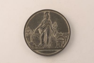 Medaglia in argento commemorante la prima Esposizione Universale, la Exhibition of Industry of All Nations tenutasi a Londra nel 1851. Il recto presenta, al centro una veduta del Crystal Palace, sede espostiva della World Fair, in alto, due busti della Regina Victoria e del Principe Alberto entro medaglioni e uno stemma reale del Regno Unito; lungo il bordo, ghirlanda di rose. Il retro presenta Minerva con ulivo e globo terrestre,, stante fra i simboli dell'industria e dei trasporti.