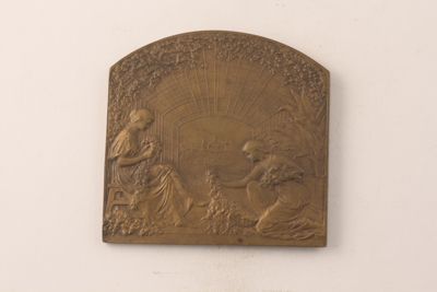 Medaglia quadrangolare coniata in occasione della Esposizione universale tenutasi a Gand, in Belgio, dal 26 aprile al 03 novembre 1913. La medaglia fu modellata e incisa da Godefroid Devreese (1861-1941), incisore e medaglista attivo presso la Zecca reale belga ai primi del Novecento. La medaglia ha pertanto una provenienza ufficiale e veniva verosimilmente assegnata all'interno dell'Esposizione.