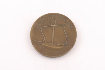Medaglia cinese raffigurante la Fortuna con una scimmia e una bilancia