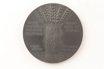 Medaglia in bronzo commemorante l'ingegnere Natale Prampolini. Sul recto presenta un busto di tre quarti di Natale Prampolini. Sul verso presenta un fascio di spine di grano.