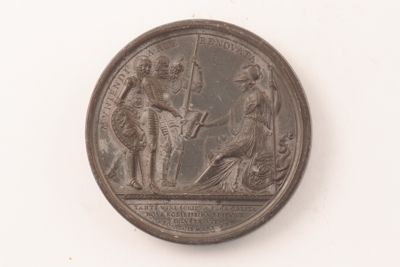 La medaglia in bronzo è giunta al Museo Nazionale della Scienza e della Tecnica Leonardo da Vinci nel 1954, con il lascito del medagliere dello Stabilimento Stefano Johnson di Milano. Il medagliere contiene sia medaglie d'arte prodotte dallo Stabilimento, fondato nel 1836, sia medaglie collezionate dalla famiglia Johnson. Di quest'ultime, però, il lascito non chiarifica la provenienza.