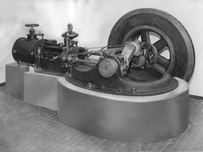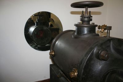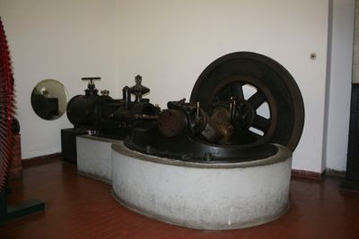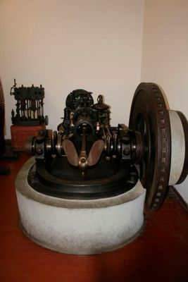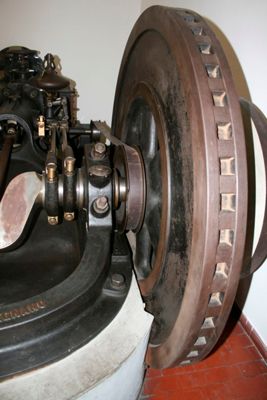 Questa motrice a vapore è costituita da una parte termica, organi di trasmissione e un volano.