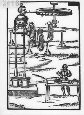 Il sistema di ingranaggi non è un'invenzione di Branca ma è ripreso da studi medievali e rinascimentali per la costruzione di macchine che moltiplicassero l'effetto della forza dell'uomo per sollevare blocchi di pietra nella costruzione di cattedrali e per caricare e scaricare navi.