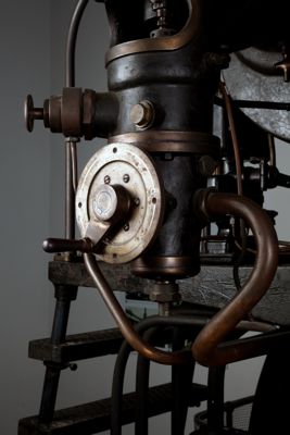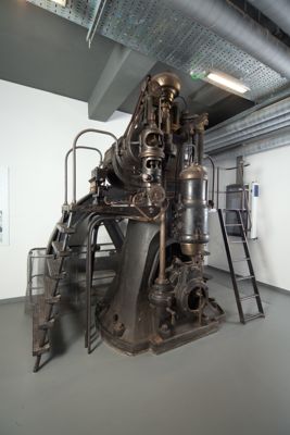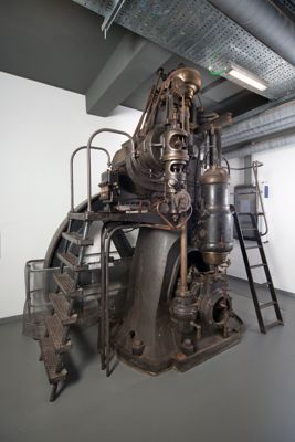 Motore a combustione interna, ad unico cilindro verticale, con due palchetti e relative scale per l'ispezione e la manutenzione. In particolare, il palchetto di sinistra consente di accedere alla pompa di lavaggio, deputata al raffreddamento idraulico, e al sistema che sovrintende alla distribuzione del lubrificante e all'azionamento delle valvole del cilindro.