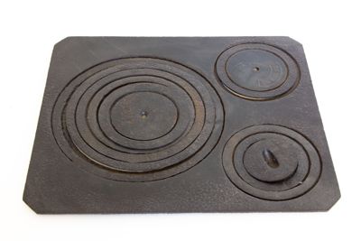Piano per cucina economica tipo Marocchi, iscrizione incisa su uno dei disci in ghisa: "RADIANT".