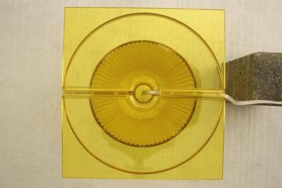Il policarbonato è stato scelto come materiale per realizzare "Take" per via delle sue proprietà di trasparenza, resistenza termica e meccanica, e durezza.