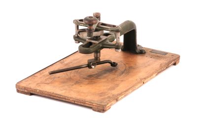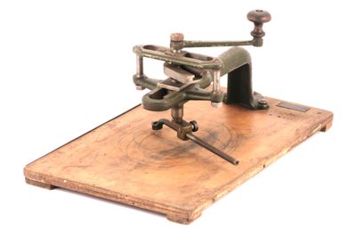 Molto probabilmente è uno strumento per tagliare le fotografie o le litografie in forma ellittica.