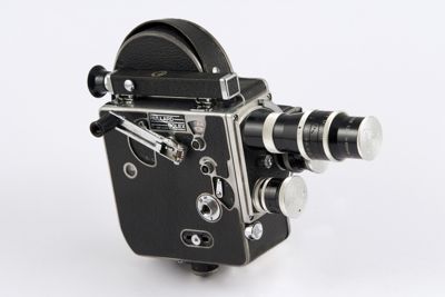 Sulla parte anteriore della cinepresa è inserita una torretta rotante con tre obiettivi di diversa apertura e lunghezza focale che possono essere rapidamente intercambiati ruotando la torretta stessa. Ciascun obiettivo ha un diaframma a iride interno la cui apertura può essere variata ruotando un'apposita ghiera posta sull'obiettivo. Anche la messa fuoco è regolabile mediante una ghiera sull'obiettivo. Per il teleobiettivo Yvar 1:3,3 f= 100mm le aperture vanno da f/3,3 a f/22 e messa a fuoco per distanze da 2,5 a 200 m (infinito); per il grandangolo Yvar 1:2,8 f= 16mm le aperture vanno da f/2,8 a f/22 e messa a fuoco per distanze da 0,3 a 10 m (infinito); per l'obiettivo standard Pizar 1:1,9 f= 26mm le aperture vanno da f/1,9 a f/22 e messa a fuoco per distanze da 0,5 a 50 m (infinito). Gli obiettivo sono protetti da un tappo in metallo avvitato. In corrispondenza del punto di inserzione dell'obiettivo è inserito un otturatore rotante.