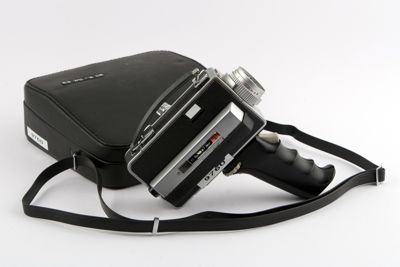 Sulla parete frontale è inserito, al centro, l'obiettivo Elmo Zoom 1:1,8 f=9,5-30mm, in alto un esposimetro. L'obiettivo ha messa a fuoco variabile da 5 a 30 (infinito) ft e zoom per distanze focali da 9,5 a 30 mm. Messa a fuoco e zoom si regolano direttamente sull'obiettivo.