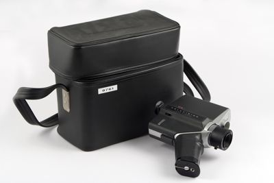 Cinepresa leggera, in plastica e metallo. Di forma parallelelpipeda con impugnatura ergonomica in plastica. E' presente in una borsa rigida in pelle e velluto con tracolla in pelle e chiusura con cerniera.