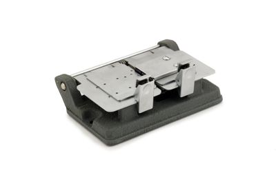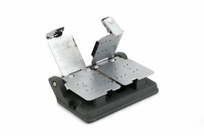 Dispositivo in metallo costituito da una base rettangolare con due montanti ai lati che sorreggono un perno longitudinale. A questo perno sono vincolate due piastre reclinabili in metallo libere di ruotare di circa 120° a cui sono sovrapposte due placche di compressione (pressori) che si bloccano sulle piastre mediante due mollette in metallo. Sotto alle placche di compressione, sulle piastre, si trovano dei dentini dove si inseriscono i fori della pellicola che si vuole tagliare e incollare. Sulla base, tra le piastre, è inserito un tagliente.