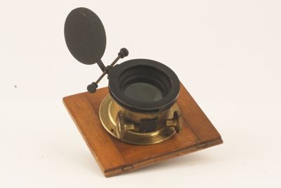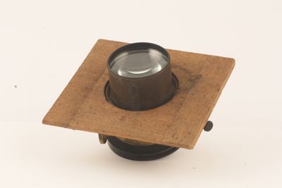 A metà dell'obiettivo è inserita una flangia per il fissaggio su un portaobiettivo. Il portaobiettivo è costotutio da una tavoletta in legno che andava inserita sull'apparecchio fotografico.