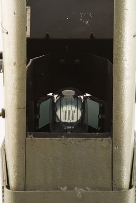 La testa è chiusa da un coperchio nel quale è fissata una ventola per il raffreddamento con trasformatore. Lampada e ventola sono collegati ad un cavo elettrico da utilizzare per l'alimentazione di rete. Sulla parete esterna si ha l'interruttore di accensione.