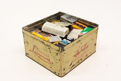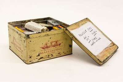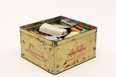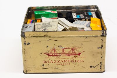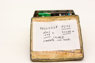 Scatola "Lazzaroni" contenente pellicole fotografiche di vario tipo e marche.
