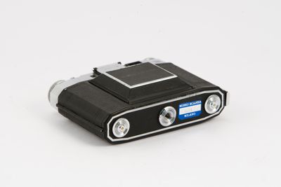 Apparecchio fotografico tascabile a sviluppo orizzontale, in metallo. L'apparecchio è inserito in una custodia in pelle marrone con interno in velluto bordeaux alla quale è fissata mediante una vite posta inferiormente. L'apparecchio poteva essere utilizzato senza estrarlo dalla custodia ma solo aprendone lo sportello frontale.