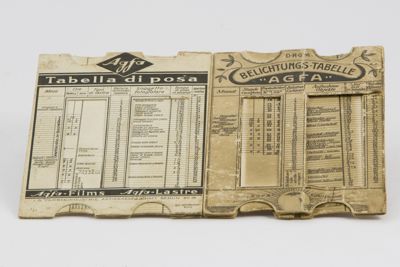 Sono presenti due tabelle della Agfa (una in italiano e l'altra in tedesco) che permettono di valutare, da un lato, le modalità di utilizzo dell'apparecchio con lastre o pellicole Agfa a seconda del giorno, dell'ora, del tipo di lastra, del soggetto da fotografare, del tempo di posa, dell'apertura relativa del diaframma, dall'altro, la quantità di polvere lampo a seconda della sensibilità delle lastre o pellicole Agfa, delle aperture del diaframma e delle distanze tra soggetto e lampo.