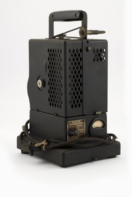 L'apparato illuminante è racchiuso in un parallelepipedo a sviluppo verticale diviso in due parti e con pareti forate per l'aerazione. In una si ha da una lampada da 250W inserita tra uno specchio concavo e una lente condensatrice, nell'altra si ha una resistenza di carico costituita da un sostegno in materiale isolante sulla quale è avvolta una spirale in metallo. Per aprire il dispositivo illuminante occorre sbloccare e ruotare la maniglia superiore.