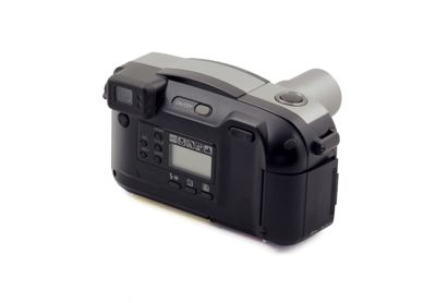 Al centro troviamo un display digitale per l'indicazione dei valori impostati (che si possono essere selezionati mediante i pulsanti posti accanto e sotto al display) dei programmi a soggetto (per ritratto, paesaggio, macro, notte), del flash incorporato (con dispositivo anti occhi rossi), dell'autoscatto, della stampa dei dati fotografici (numeri foto, data, titoli), ecc.