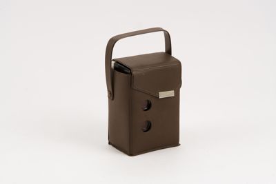 Dotato di custodia in plastica con maniglia. Aprendo la custodia è possibile utilizzare l'apparecchio senza estrarlo completamente.