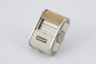Su due lati del parallelelpipedo sono inserite due guide nelle quali può scorrere una tendina in plastica scorrevole aprendo la quale si scopre la cellula fotoelettrica posta superiormente e il visore per la lettura dei tempi di scatto dell'otturatore (da 1/30 a 1/1000 di secondo) e delle velocità di scorrimento di pellicole cinematografiche (da 8 a 32 fotogrammi al secondo) da selezionare.