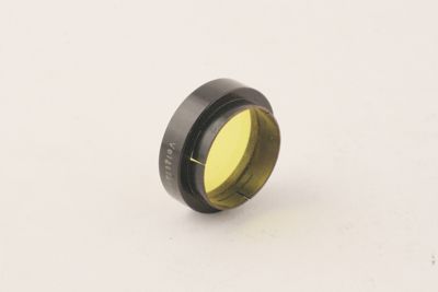 Filtro fotografico di forma circolare con lente gialla. Inserzione a pressione davanti all'obiettivo.