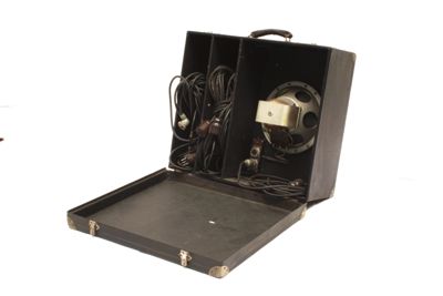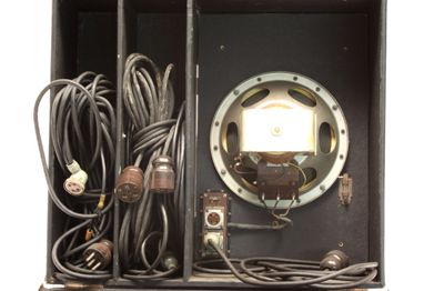 Una parete laterale è incernierata nella parte bassa e completamente apribile. All'interno la valigia è suddivisa in tre scomparti. Due, più piccoli, contengono quattro cavi con varie tipologie di spine e prese a tre/ quattro poli. Lo scomparto più grande contiene l'altoparlante, fissato alla parete e due prese per il collegamento dell'altoparlante al proiettore in modalità diretta o derivata. In corrispondenza del punto dove è collocato l'altoparlante, la parete esterna è apribile per una migliore fruizione del suono e la bocca dell'altoparlante è protetta da una rete in tessuto.