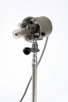 In alto si inserisce la testa del flash, con un supporto snodato. La testa del flash è protetta da un coperchio in metallo da togliere per inserire la parabola. Il flash è costituito da una lampada centrale e quattro laterali.