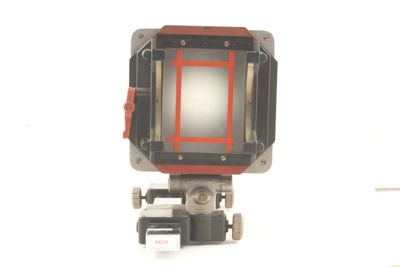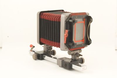 L'apparecchio fotografico è costituito da due telai in metallo a sezione quadrata con snodo (frontale e dorso), posti parallelamente tra loro e uniti dal soffietto. Un telaio porta uno specchio smerigliato con incollate quattro strisce di nastro adesivo rosso a delimitare un formato 6x9cm e con un supporto per l'inserimento delle lastre fotografiche. Al centro dell'altro telaio è fissato il porta obiettivo con vite per il fissaggio. L'ottica è mancante.