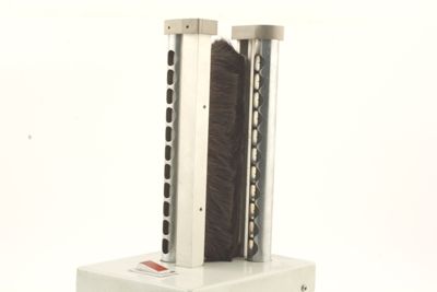 Sulla faccia superiore della base, sono inserite due aste verticali ciascuna costituita da un supporto contenente una spazzola in setole naturali e una colonna cava contenente un cilindro con le piccole punte su tutta la superficie. Le due aste sono disposte frontalmente e le spazzole si toccano all'estremità libera.