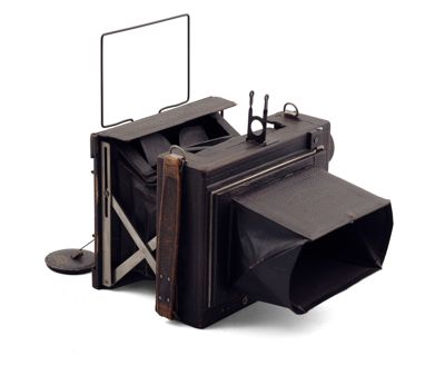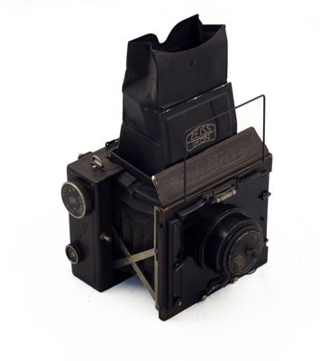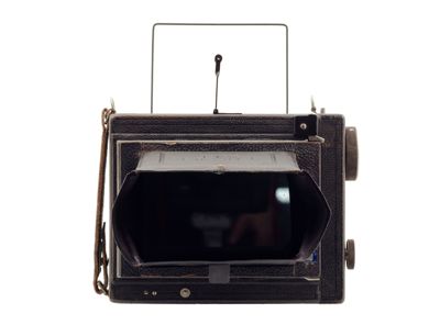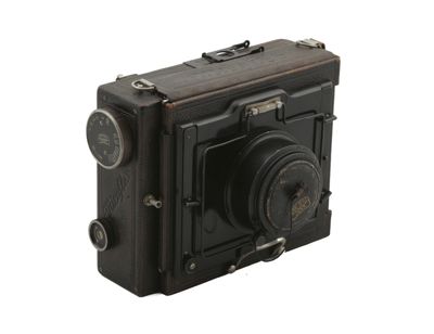 apparecchio fotografico reflex monoculare, a tiranti, a lastre 9x12cm