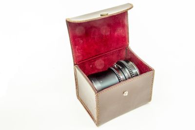 Obiettivo parte di un set fotografico Hasselblad con 2 corpi macchina, 4 obiettivi, vari accessori in valigetta in pelle (40x44x14 cm.).