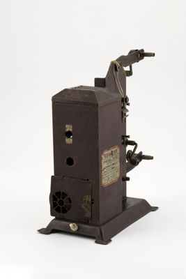 Su un lato del dispositivo di proiezione, in corrispondenza dei cilindri per l'avanzamento della pellicola, si hanno tre pulegge che venivano collegate mediante cinghie al motorino. Anche il porta bobina inferiore era collegabile al motorino.