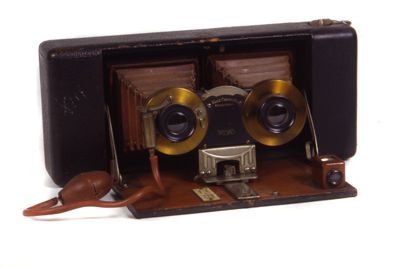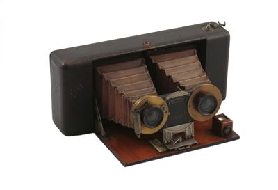 Successivamente vennero prodotti i primi apparecchi fotografici bioculari ovvero apparecchi con due obiettivi uguali montati affiancati che permettevano la ripresa simultanea delle due immagini (obiettivi stereo). Con l'introduzione delle macchine a soffietto anche gli apparecchi stereoscopici divennero portatili.