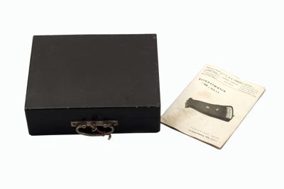 Tirando verso l'alto si estrae una lente convergente con mirino inciso inserita in una cornice in metallo.