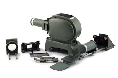 Sono inoltre disponibili una lente grandangolare aggiuntiva e una lente per proiezione rialzata costituita da due guide in metallo sulle quali sono fissati un dispositivo per la deviazione del fascio luminoso, un obiettivo Leitz Hektor 1:2,5 f=120mm e uno specchio inclinato con angolo regolabile e coperchio in metallo.