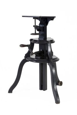 Un volantino permetteva la variazione dell'inclinazione del piano di appoggio dell'apparecchio fotografico e il suo spostamento orizzontale..