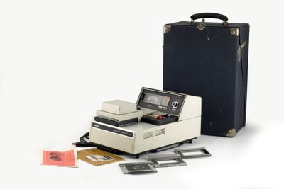 Nella parte bassa del dispositivo si ha un visore estraibile per selezionare il fotogramma desiderato tra quelli presenti in una striscia di pellicola.