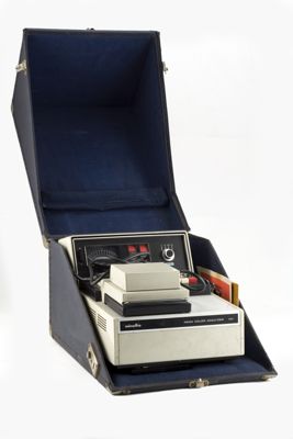 Questo analizzatore colore costituito dallo strumento vero e proprio di forma trapezoidale sul quale si trovano i comandi e due guide una che porta il rivelatore con telaio porta negativo e il visore per i negativi.