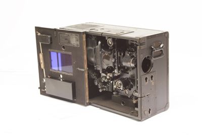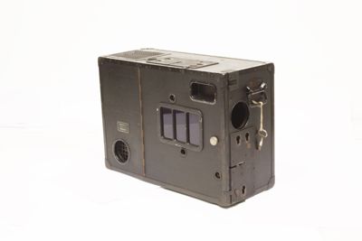 Esternamente sono visibili solo il foro circolare in corrispondenza dell'obiettivo, le fenditure per il passaggio della pellicola 35mm (le bobine venivano inserite esternamente), griglie per l'aerazione, una finestra in vetro blu per la visione interna dell'apparecchio. Vicino alle fenditure sono presenti agganci per le aste porta bobine (mancanti).