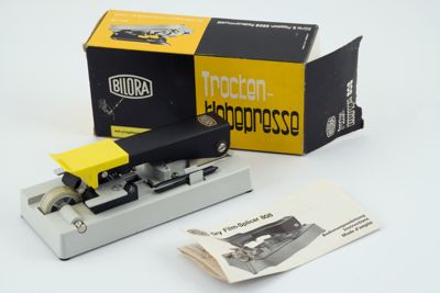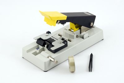 Dispositivo costituito da una base di forma rettangolare in plastica sulla quale è fissato il braccio della taglierina che può ruotare verso l'alto. La taglierina presenta una parte per tagliare la pellicola e una per tagliare il nastro adesivo. In mezzo si ha un dispositivo di manovra. Sulla parte restante della base si trovano, al centro, un'aletta per il fissaggio della pellicola, un vano per alloggiarla con dentini sporgenti per il fissaggio della pellicola e dentini per il nastro adesivo e una guida per la pellicola, all'estremità opposta rispetto al punto di fissaggio della taglierina si trova invece il rotolo di nastro adesivo.