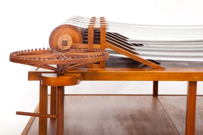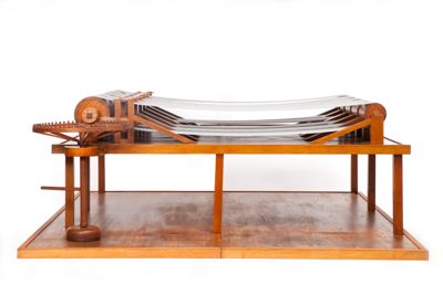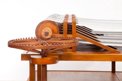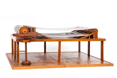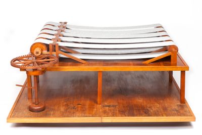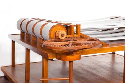 Il modello è costituito da una base di lavoro su cui sono collocate cinque coppie di rulli, o subbi, che tendono altrettanti anelli di pezze. Cinque subbi di un'estremità sono collocati su un albero di trasmissione collegato tramite pignone a una ruota dentata a manovella.