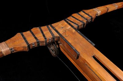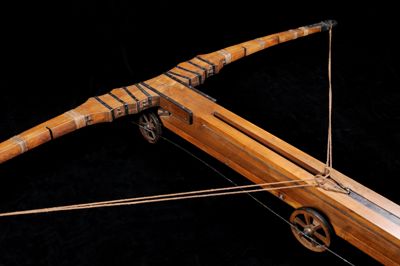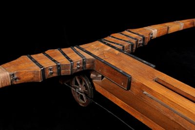 Il modello rappresenta una balestra gigante: le braccia, per un'apertura totale di 24 metri, sono realizzate in struttura lamellare. Sei ruote ne assicurano il movimento.
