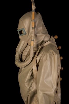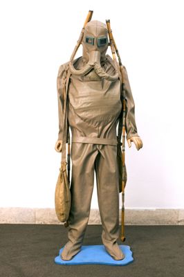 Il modello rappresenta uno scafandro in cuoio corredato di manichette di respirazione.