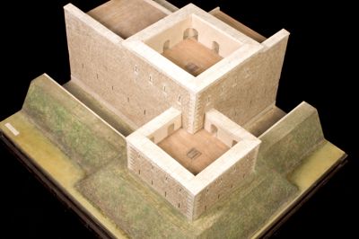 Il modello rappresenta l'angolo di una rocca con due fortificazioni angolari quadrate: la prima è compresa nel perimetro della cortina muraria, mentre la seconda sporge dall'angolo per la maggior parte del suo volume. Il fossato è ricavato senza scavo ma conun muro di contenimento e un considerevole riporto di terra.