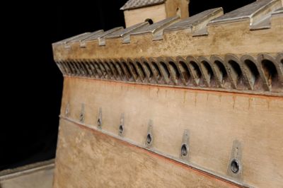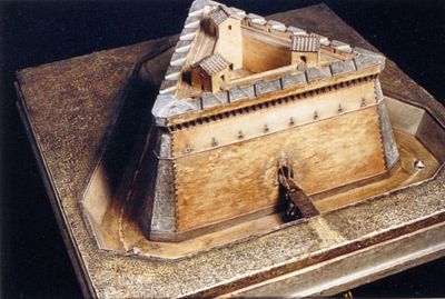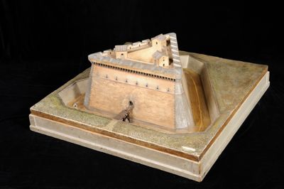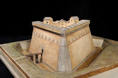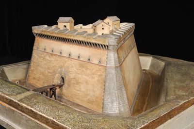 Il modello rappresenta una rivellino, avamposto difensivo, a pianta triangolare. Ha pareti fortemente scarpate divise in due settori da un cordolo. Nella fascia superiore sono presenti feritoie per le postazioni di artiglieria. Gli spigoli del rivellino sono smussati, e sul tetto a terrazza c'è un camminamento coperto e tre piccoli edifici di servizio.