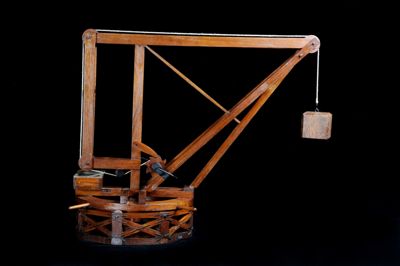 Nelle gru di Brunelleschi Leonardo riconosce l'importanza della vite senza fine come principale moltiplicatore di potenza, insieme ai contrappesi che fin dal Medioevo costituivano una delle forze motrici più utilizzate per azionare le macchine. La scienza dei pesi, De Ponderibus, raccoglieva l'insieme di nozioni teoriche raccolte nel Medioevo e veniva utilizzata in larga misura nei cantieri delle cattedrali.
