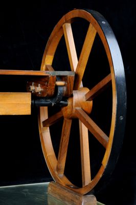 Questo modello è un interpretazione di studio di un assale per carri. Due ruote a otto raggi ruotano su due semiassi. Ai semi assi si appoggia, tramite due rulli per parte, il sostegno del carro vero e proprio. I semiassi sono parzialmente contenuti in una cassetta a forma di parallelepidepo.