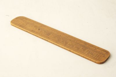 Su un lato si presenta come un righello con suddivisioni da 1 a 10, ciascuna parte suddivisa a sua volta con indicazioni in numeri romani da I a M.
